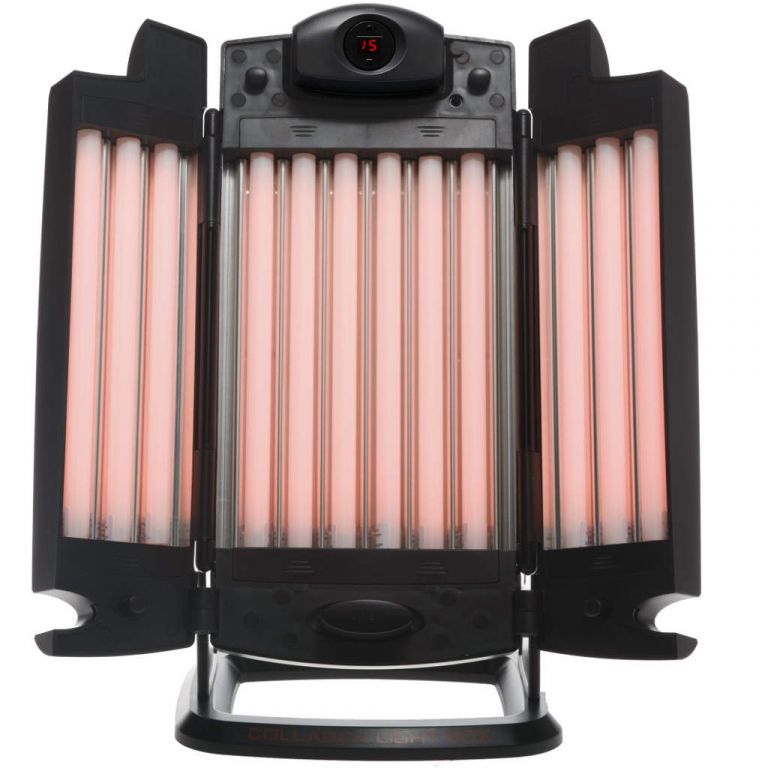 De Collageen Light Box is een uniek apparaat, waarmee u een volledige collageen behandeling in huis haalt voor gezicht en decolleté. Dankzij de 12 collageen lampen van ieder 15 Watt per stuk bent u verzekerd van een professionele collageen behandeling. Met de unieke vormgeving wordt ook de zijkant van het gezicht goed bereikt door het rode collageenlicht..